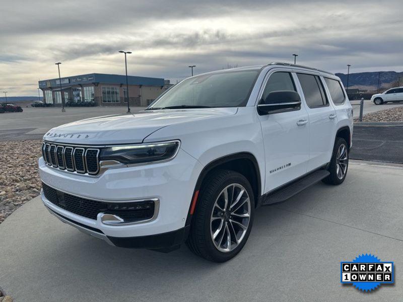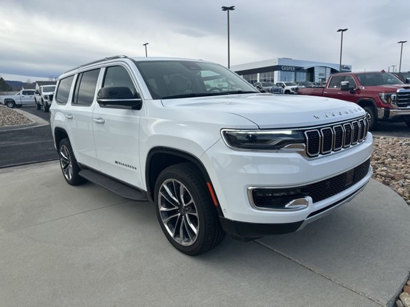 2023 Jeep Wagoneer Series II low-mileage luxury SUV in Casper, WY. This pristine Jeep Wagoneer features only 27,703 miles and a strong 6-cylinder, 3.0L gasoline engine with confident 4WD capability, ready for Wyoming roads and beyond. Enjoy premium comfort with leather seats and an upscale interior designed for families and long drives. Stay connected and entertained on every trip with Apple CarPlay and Android Auto integration, while driver-assist features like Forward Collision Warning and a Back-Up Camera enhance safety and awareness. The Jeep Wagoneer Series II balances advanced technology with comfortable, capable performance, making it ideal for work, weekend adventures, or daily commuting. We're offering the best price on this 2023 Jeep Wagoneer in the Casper area a rare combination of low mileage, robust engineering, and top-tier amenities at exceptional value. Financing options are available to make ownership simple and affordable. Schedule a test drive in Casper, WY today to experience the smooth ride, roomy cabin, and dependable 4WD system firsthand. Vehicles like this with low mileage and top features don't stay on the lot long come see why this Jeep Wagoneer Series II is the smart choice for drivers seeking capability, comfort, and savings.